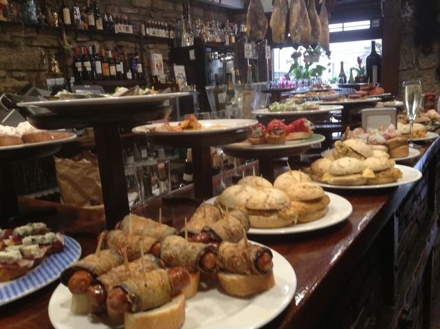 旧市街にはバルが所狭しと並んでいてそこで出される料理は高級店並み。ピンチョスやタパスと言われる小皿料理を低価格で楽しめる。